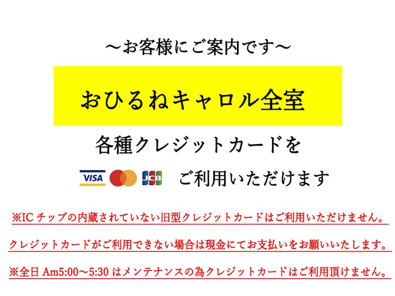 1.客室内精算機での各種クレジットカードでのご精算ができる様になりました。