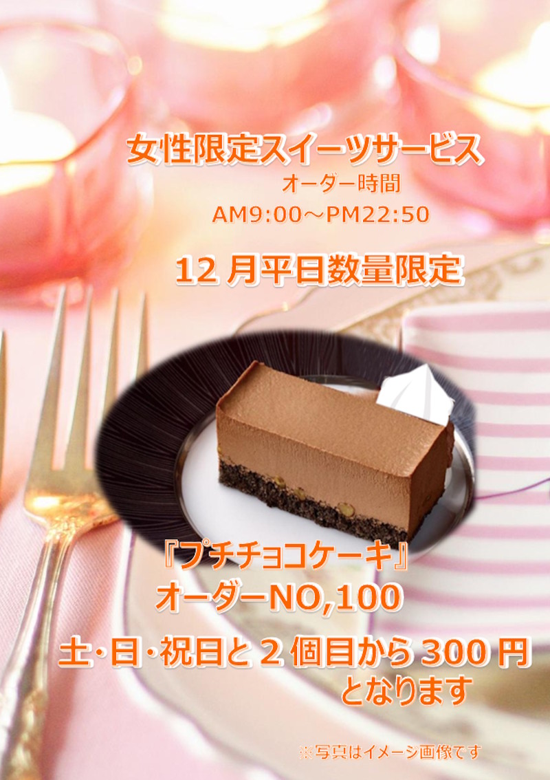 ・女性限定スイーツサービス「プチチョコケーキ」NEW