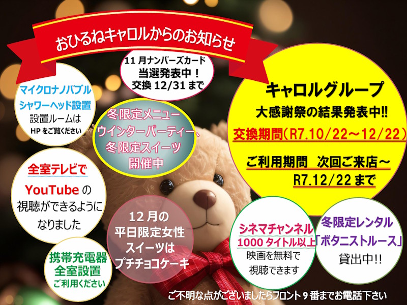 ・全店イベント「キャロル大感謝祭」 ホテルにて当選発表中!NEW