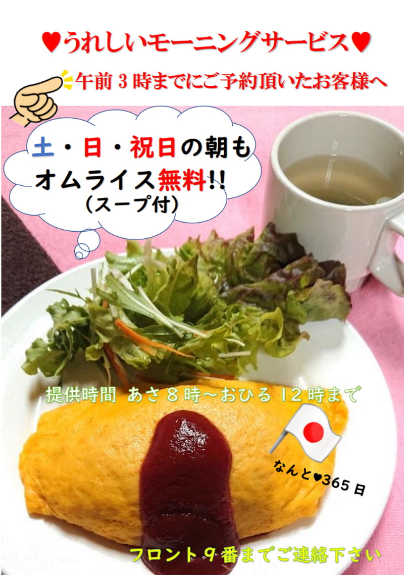 ・午前3時までにご予約頂いたお客様へモーニングサービスNEW